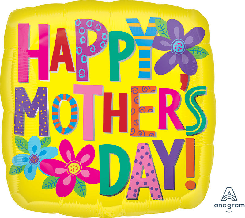 28" Happy Mother's Day Bright Yellow Jumbo Foil Balloon