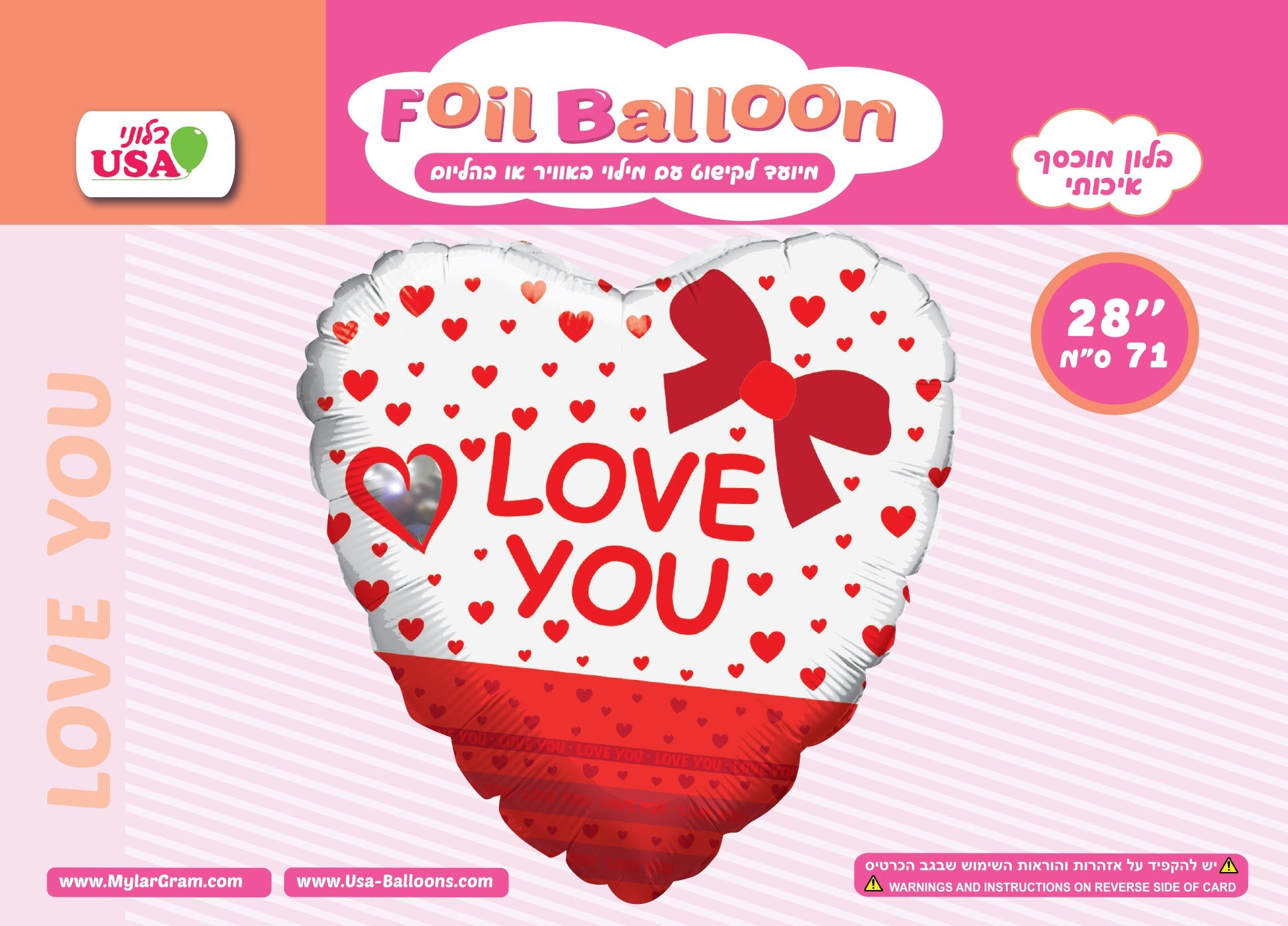 28" I Love You Ribbon Bow Hearts In Foil Balloon