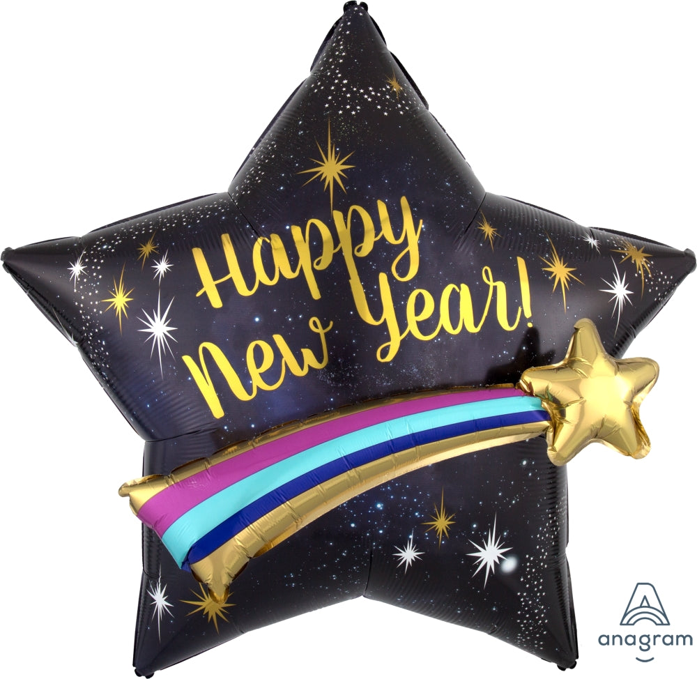 28" Jumbo Happy New Years Shooting Star Foil Balloon