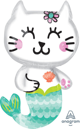 31" Jumbo Selfie Celebration Mermaid Cat Foil Balloon