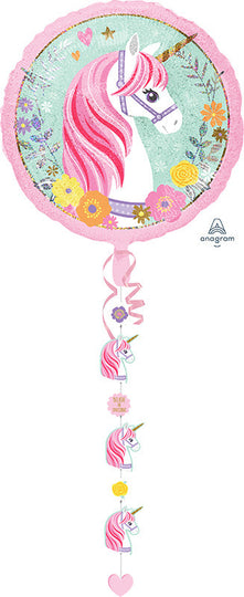 32" Drop-A-Line Balloon Magical Unicorn Foil Balloon