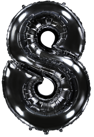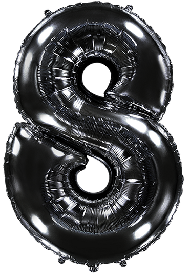 Inflates to approximately 32".Fill with air or helium.Black Number "8" Foil Balloon Manufactured by Flexmetal in Spain.