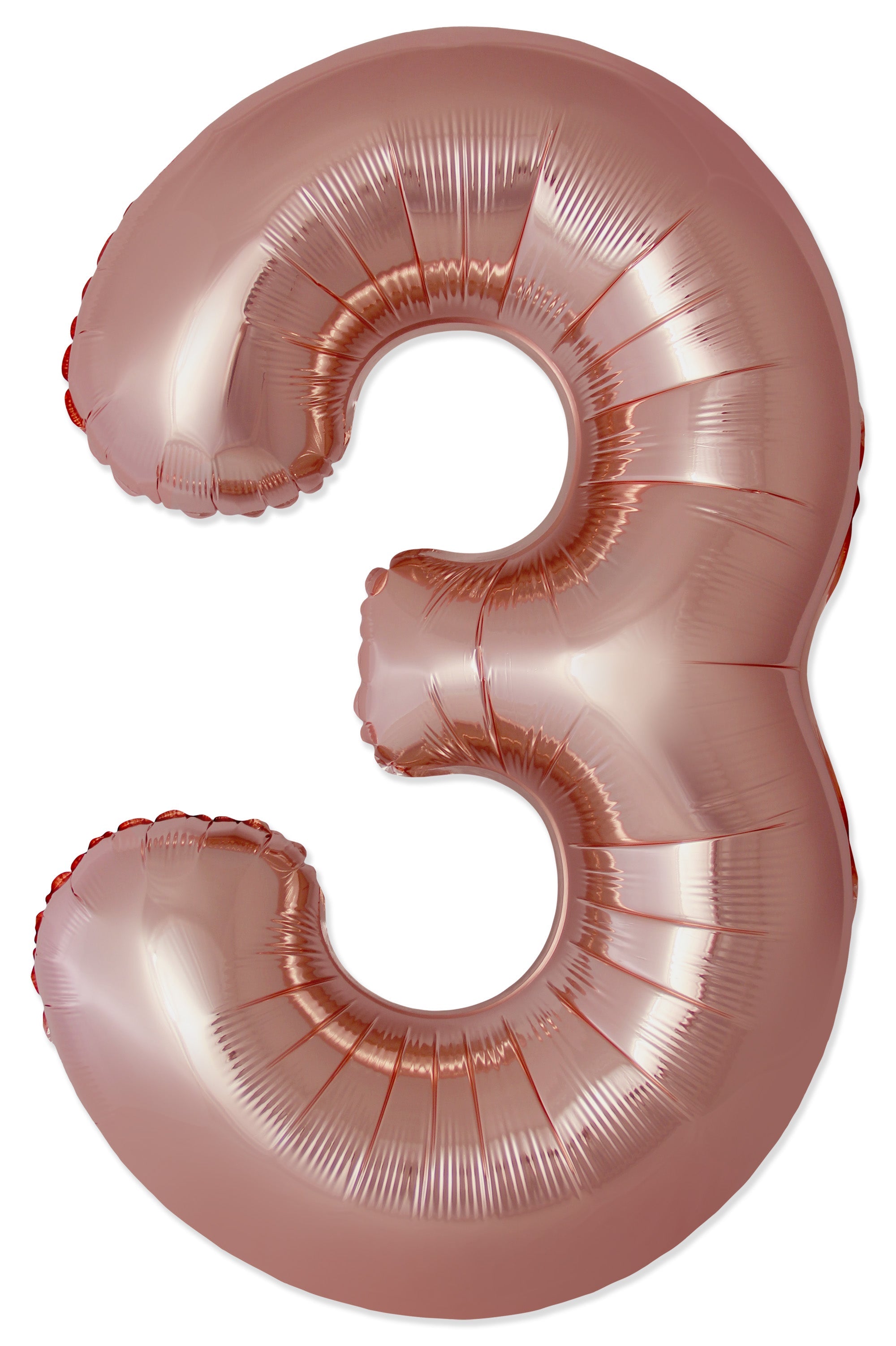 32" Inflated (40" Uninflated Approx) Number "3" Slimmer Design Rose Gold Brand Flexmetal