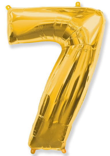 Inflates to approximately 32".Fill with air or helium.Shape Number "7" Gold Balloon Manufactured by Flexmetal in Spain.