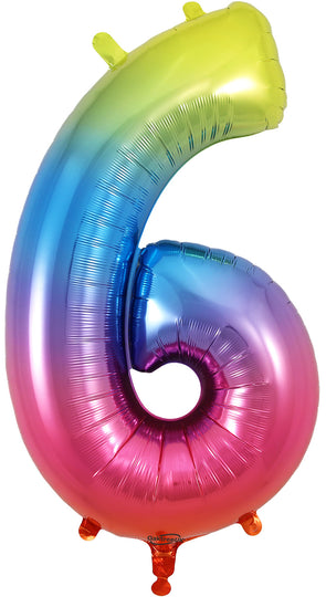 34" Number 6 Rainbow Oaktree Foil Balloon