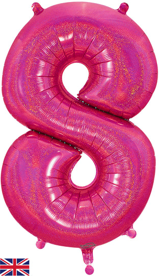 34" Number 8 Holographic Pink Oaktree Foil Balloon