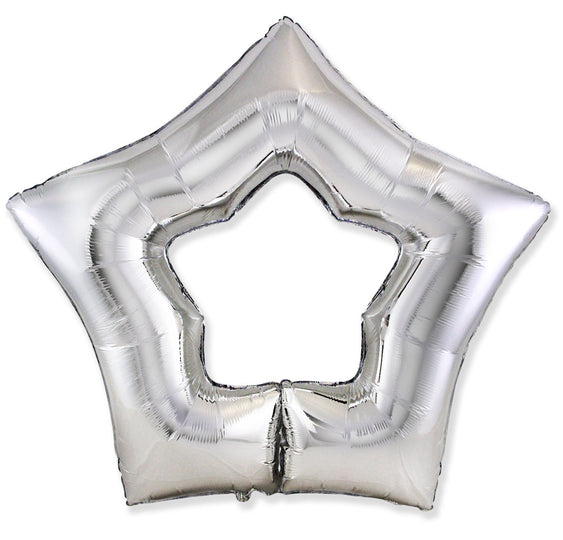 34" Silver Hole Star Foil Balloon