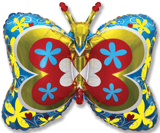 35" Blue Deco Butterfly Foil Balloon