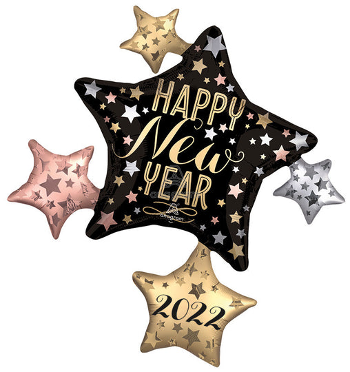 35" SuperShape 2022 Satin New Year Cluster Foil Balloon