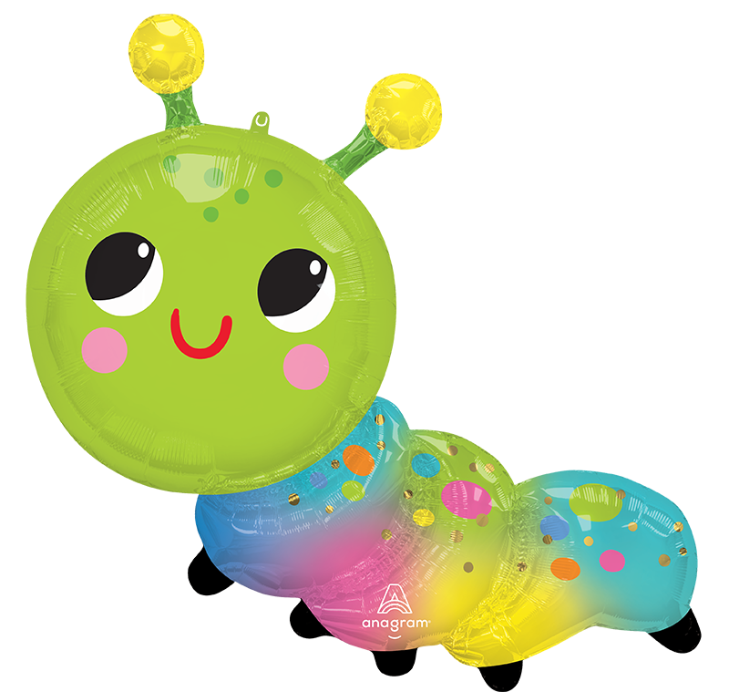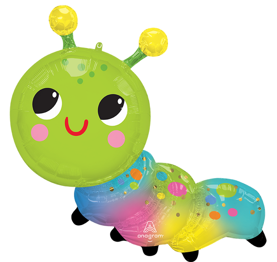 Bring joy and color to your celebration with this 35" SuperShape Happy Caterpillar Foil Balloon. This delightful balloon features a vibrant green caterpillar with a cheerful face, including big, expressive eyes, pink cheeks, and a red smile. The body of the caterpillar showcases a beautiful gradient of blue, pink, and yellow hues adorned with colorful polka dots. Perfect for birthdays, baby showers, or any fun event, this balloon is sure to brighten up the atmosphere and bring smiles to everyone's faces.