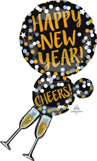 36" Jumbo Happy New Years Champagne Glasses Balloon