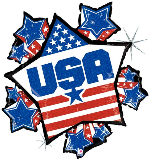37" Holographic Shape Packaged Patriotic Bursting Stars Balloon