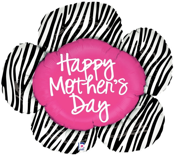 38" Foil Shape Balloon Mother's Day Zebra Flower