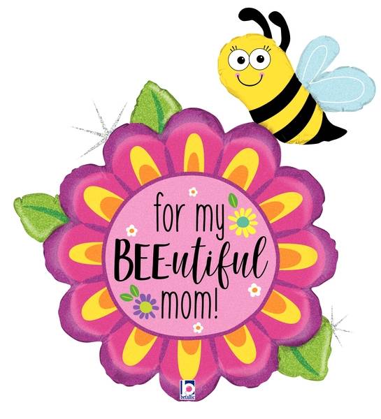 38" Holographic Bee-Utiful Mom Flower Foil Balloon