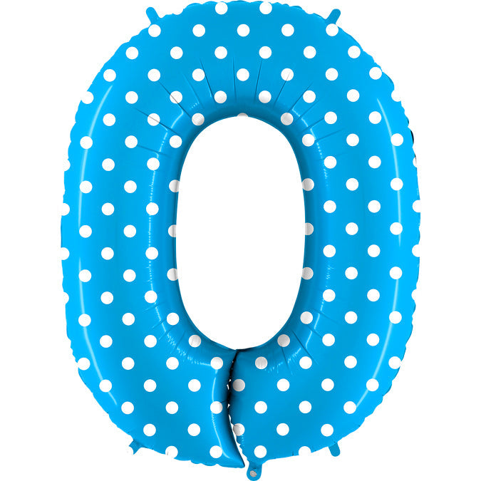 40" (34" Inflated) Foil Shape Balloon Number 0 Baby Blue Dots