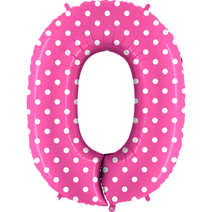 40" (34" Inflated) Foil Shape Balloon Number 0 Baby Pink Dots