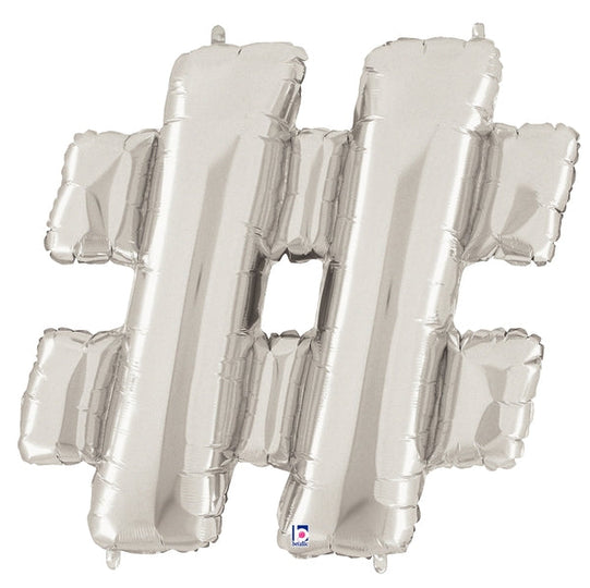 40" (34" Inflated) Foil Shape Balloon Silver Hashtag Megaloons