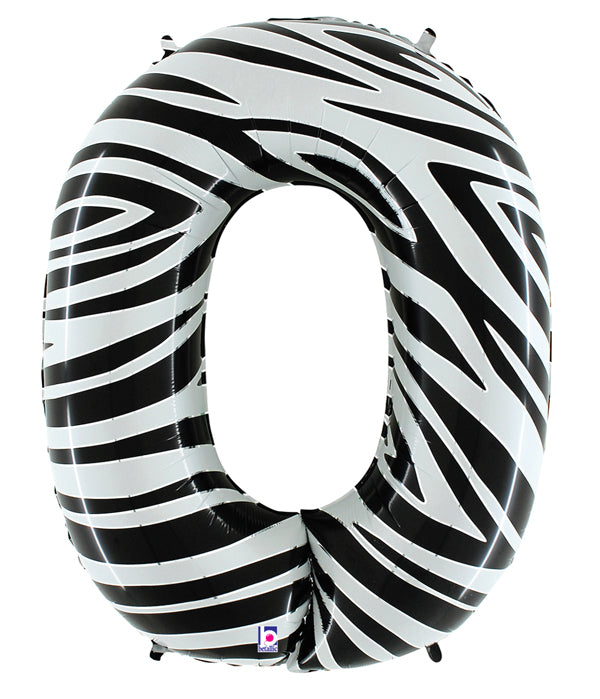 40" (34" Inflated) Zebra Foil Shape Polybagged Number 0 Balloon