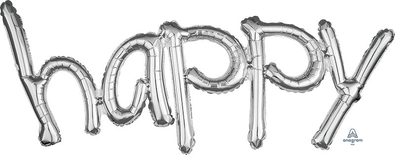 41" Freestyle Phrase "Happy" Silver Foil Balloon