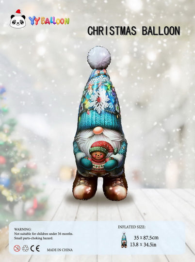 42" Standing Airfill Only Christmas Gnome Blue Foil Balloon