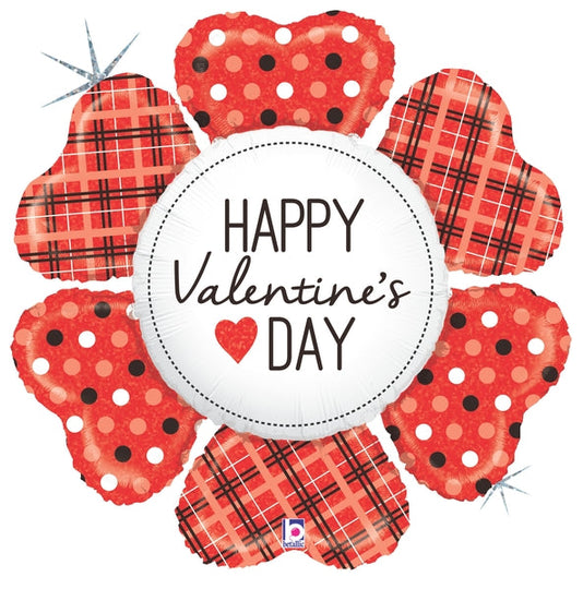 43" Holographic Shape Valentine Heart Flower Plaid Balloon