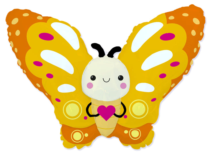 44" Cute Butterfly Yellow Foil Balloon
