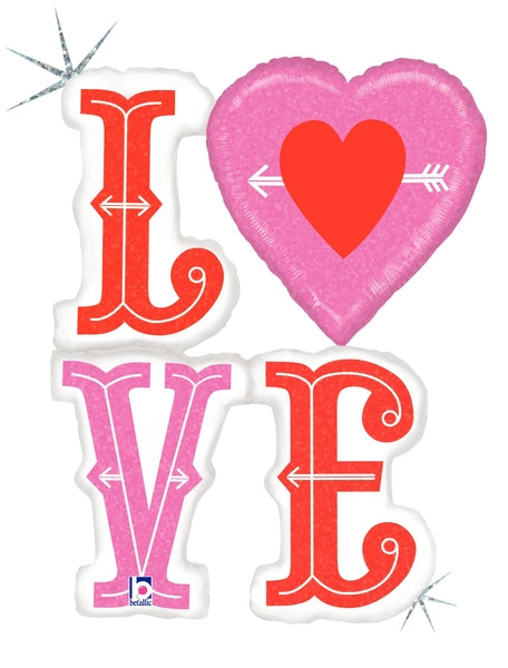 46" Holographic LOVE Heart & Arrows Foil Balloon