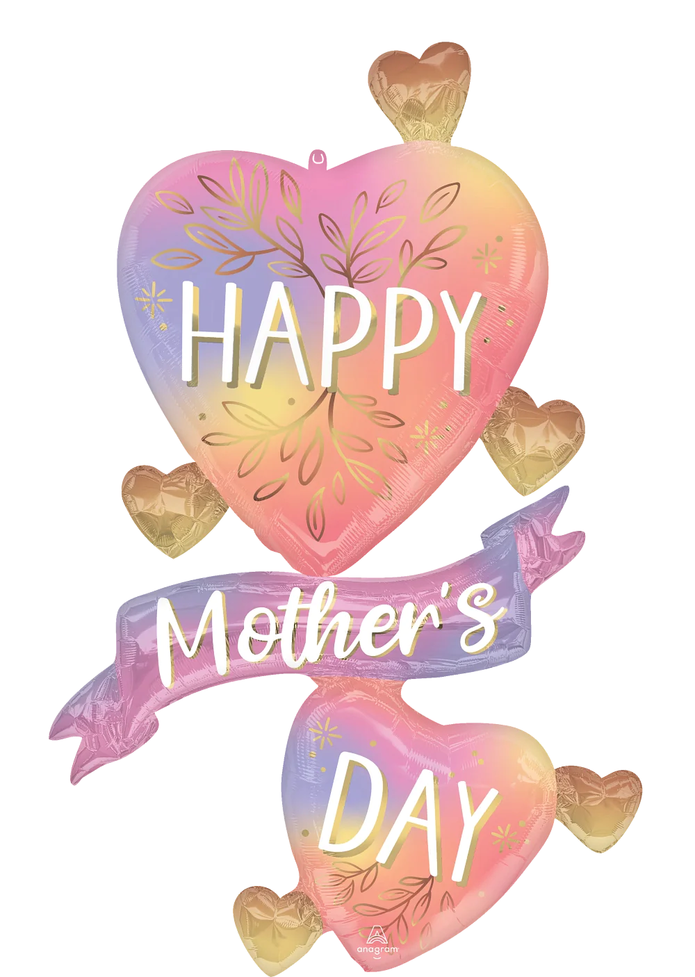 49" Multi Balloon Happy Mother's Day Botanical Traces Hearts Foil Balloon