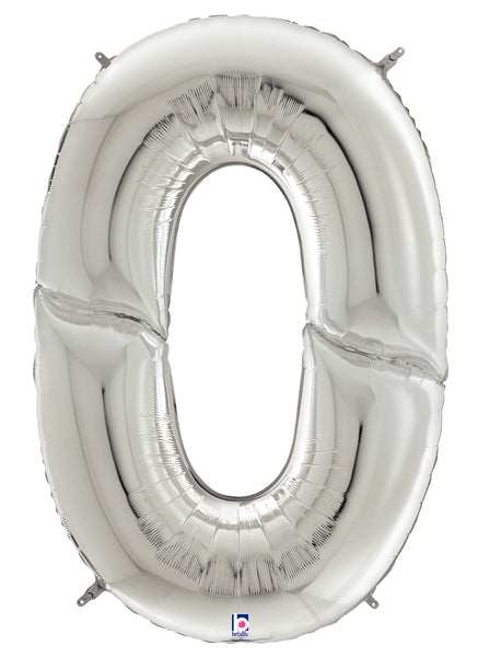 64" Foil Shaped Gigaloon Balloon Packaged Number 0 Silver