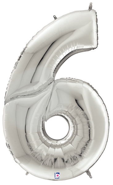 64" Foil Shaped Gigaloon Balloon Packaged Number 6 Silver