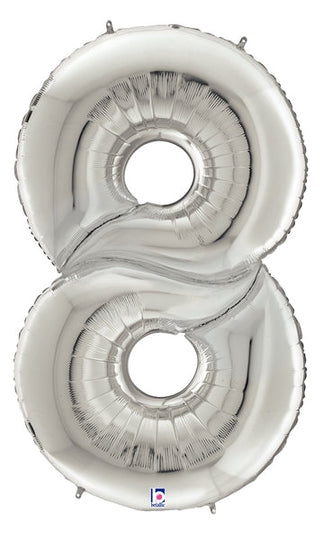 64" Foil Shaped Gigaloon Balloon Packaged Number 8 Silver