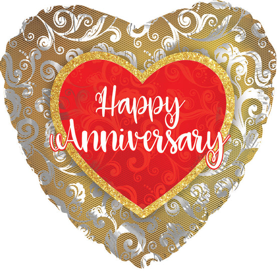 9" Airfill Only Anniversary Silver Lace Foil Balloon