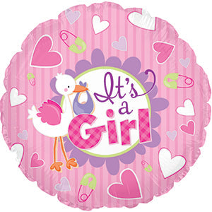 9" Airfill Only It's A Girl Stork Self Sealing Valve Foil Balloon