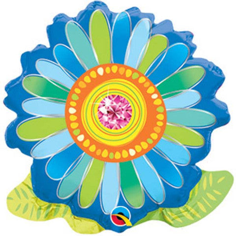 9" Airfill Only Jeweled Blossom Blue and Green Foil Balloon