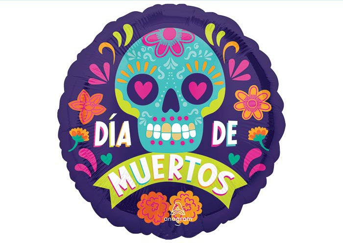 9" Airfill Only Dia De Muertos Bold Sugar Skull Foil Balloon