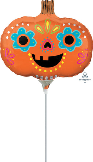 Airfill Only Mini Shape Day of the Dead Pumpkin Foil Balloon