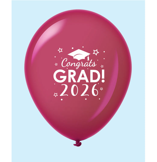 11" Congrats Grad 2026 Printed Latex Balloons 25 Count Burgundy