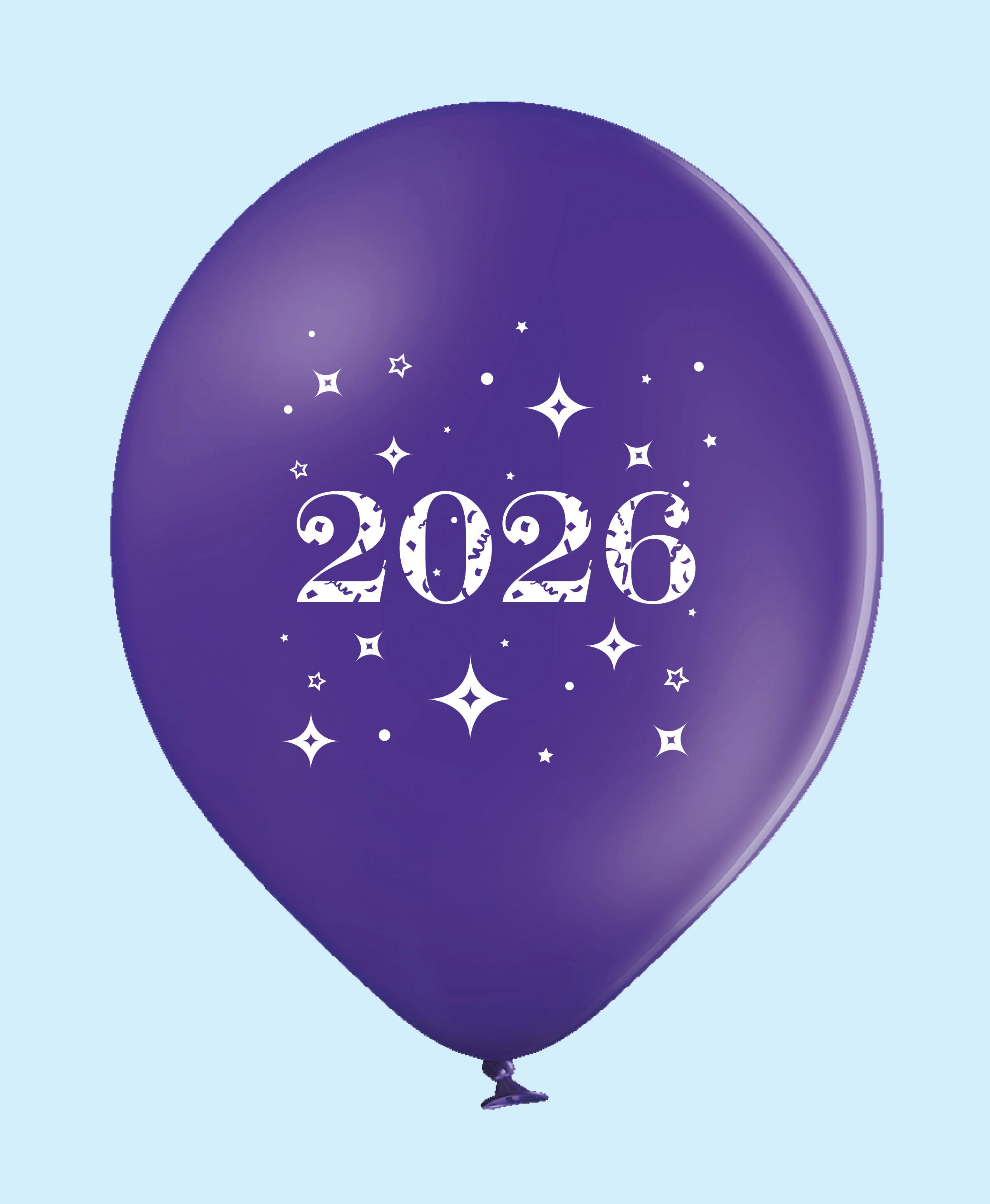 11" Year 2026 Stars Printed Latex Balloons Purple (25 Per Bag)