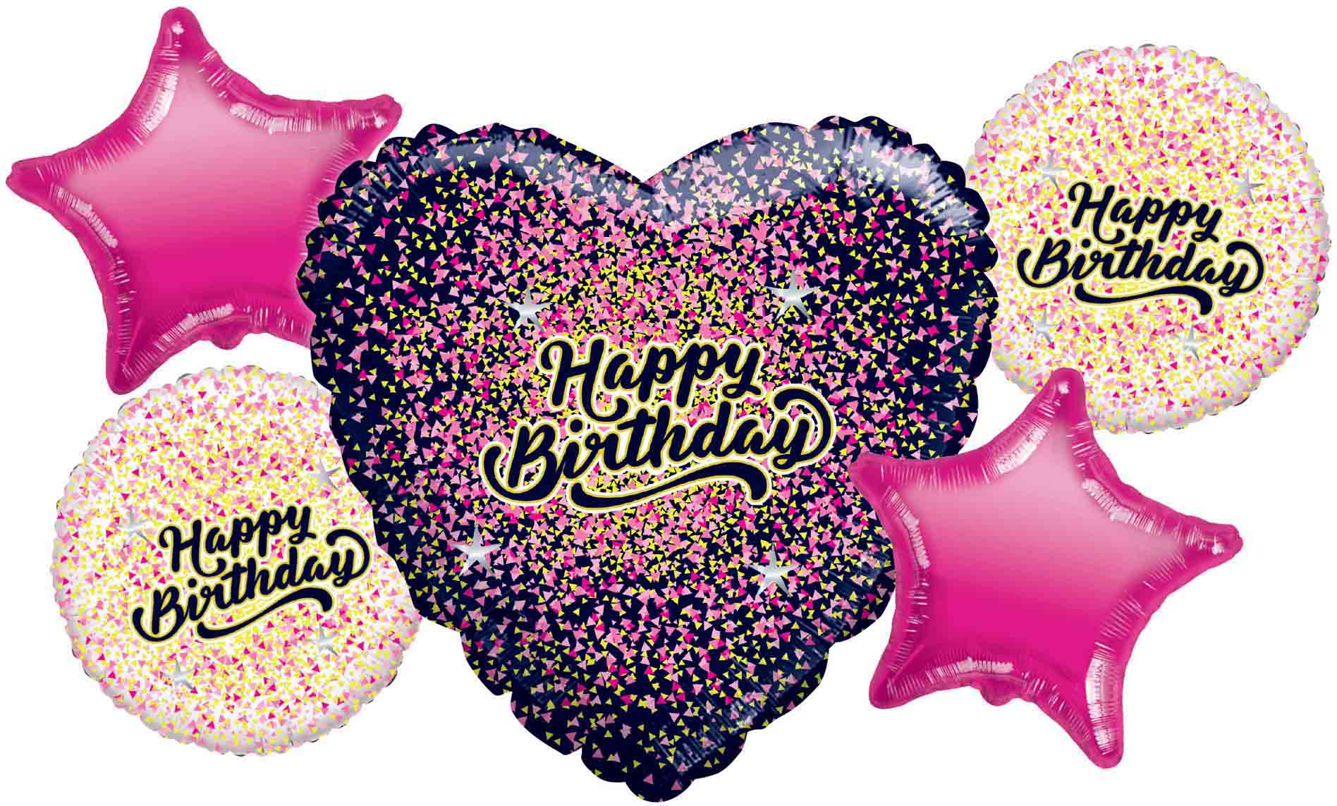 Bouquet 5pc Happy Birthday Black/Gold/Pink Foil Balloon