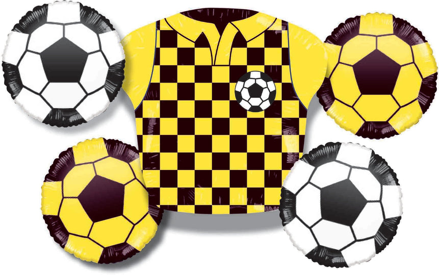 Bouquet 5pc Soccer T Shirt Yellow With Black Foil Balloon
