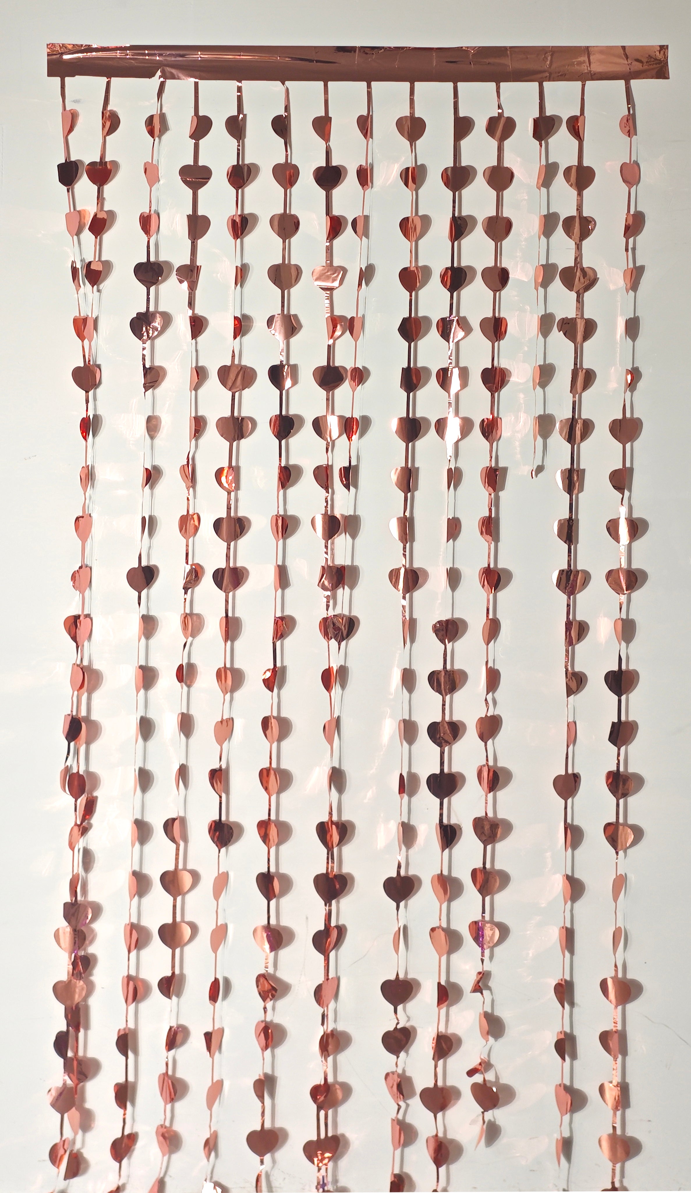 6.5 Feet x 3.25 Feet Foil Fringe Tinsel Heart Curtain Backdrop MylarGram Rose Gold