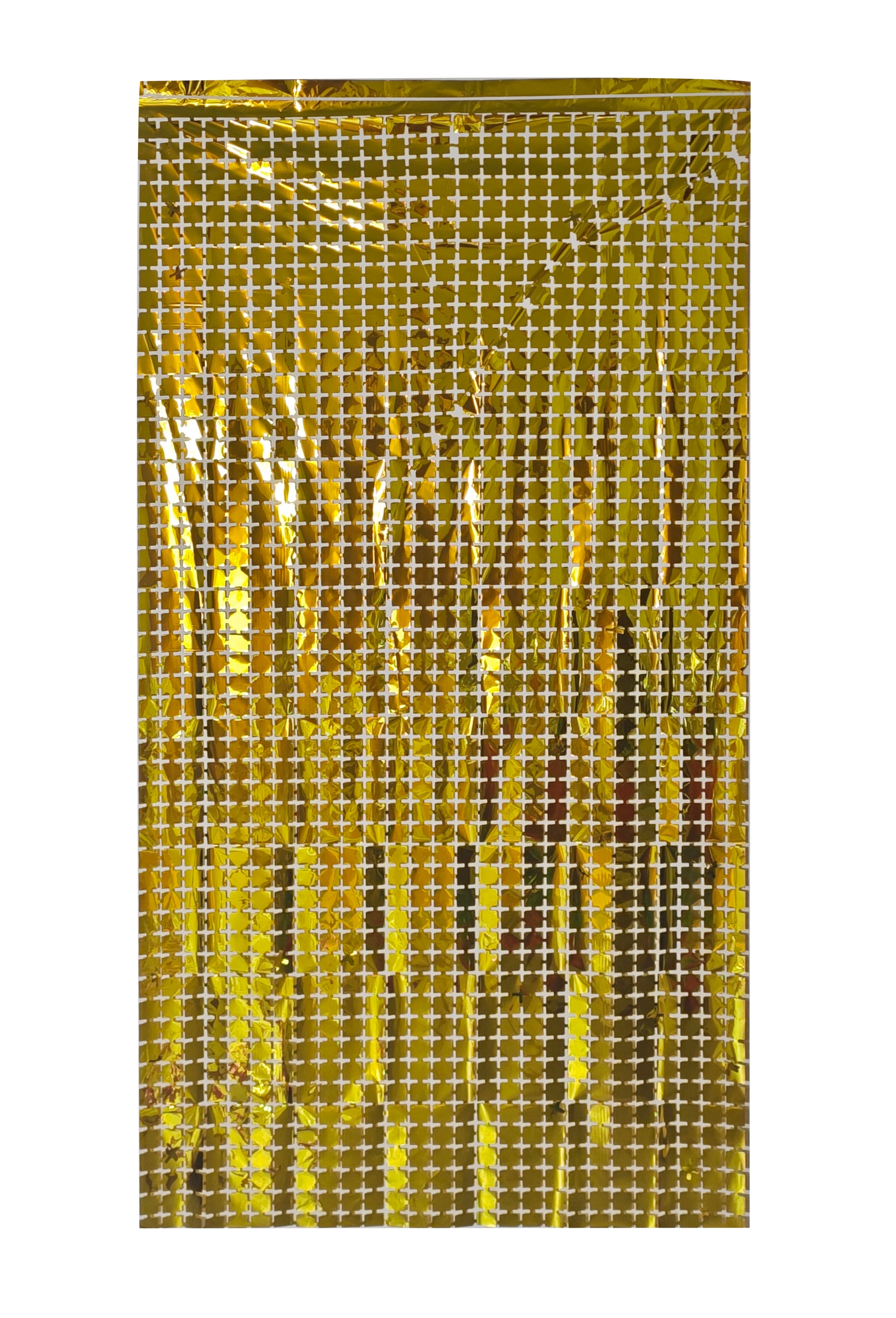 6.5 Feet x 3.25 Feet Foil Fringe Tinsel Squares Curtain Backdrop MylarGram Gold